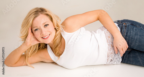 Beautiful Smiling Blonde Lying Down and Relaxing