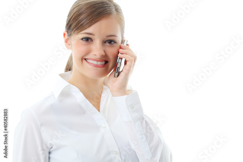 Beautiful smiling business woman talking on the phone