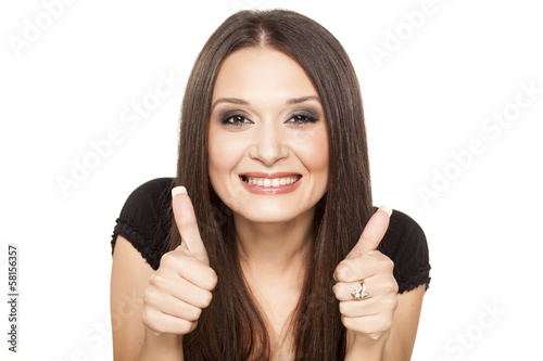 beautiful smiling girl showing thumbs up