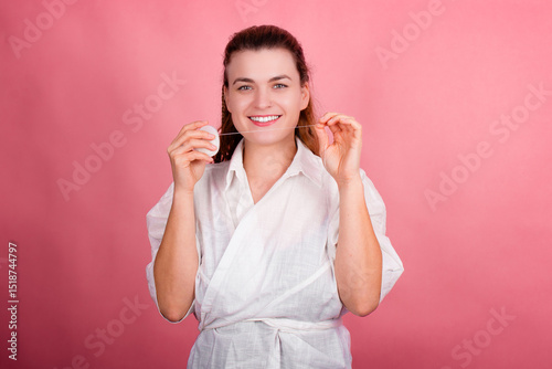 Beautiful smiling woman with healthy teeth, all natural, dentist perfect smile, dental implantology, healthcare mouth washing