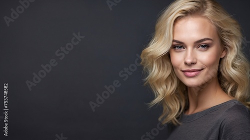 beautiful smirking blonde woman with healthy skin looks at the camera. natural makeup of a young beautiful model on a studio background. cosmetic concept.