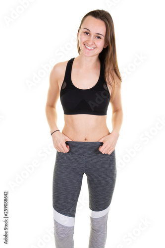 beautiful strong happy cheerful young sports woman posing isolated on white background