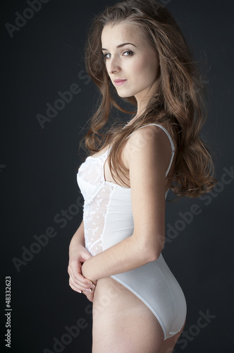 beautiful stunning sexy girl in white lingerie