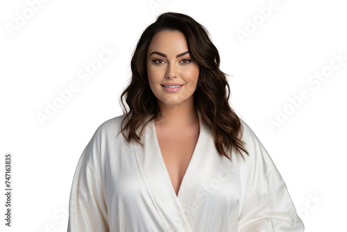beautiful woman and chubby wearing a bathrobe isolated on transparent and white background.PNG image.