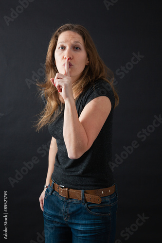 Beautiful woman doing different expressions in different sets of clothes: be quiet