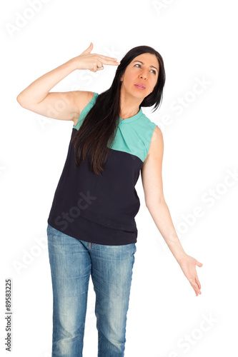 Beautiful woman doing different expressions in different sets of clothes: committing suicide