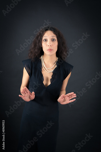 Beautiful woman doing different expressions in different sets of clothes: innocent