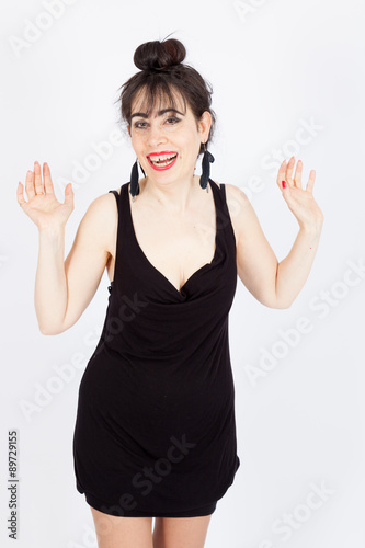 Beautiful woman doing different expressions in different sets of clothes: joy