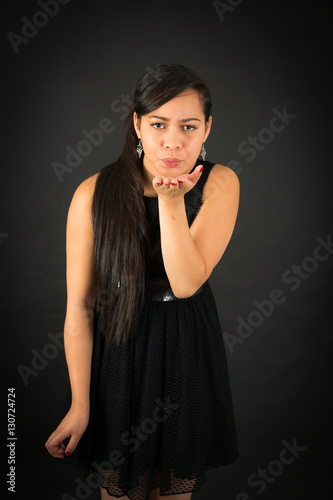 Beautiful woman doing different expressions in different sets of clothes: kiss