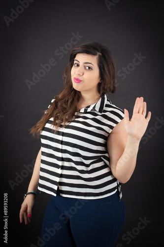 Beautiful woman doing different expressions in different sets of clothes: waving