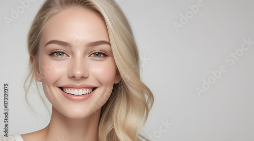 Beautiful woman face with healthy skin and natural make up. skincare advertising concept