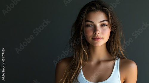 Beautiful Woman in White T-Shirt Women's Breast Dark Background Breast Cancer Support, prevention, mammography, screening, oncology, cancer treatment