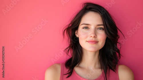beautiful woman pink background portrait