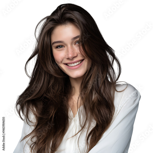 Beautiful Woman Portrait Long Brown Hair White Shirt Smiling Girl