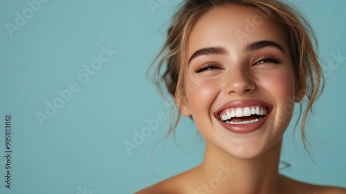 Beautiful woman showing off her flawless teeth while smiling confidently in a studio.