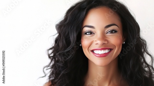 Beautiful Woman Smiling Brightly Isolated on White Background