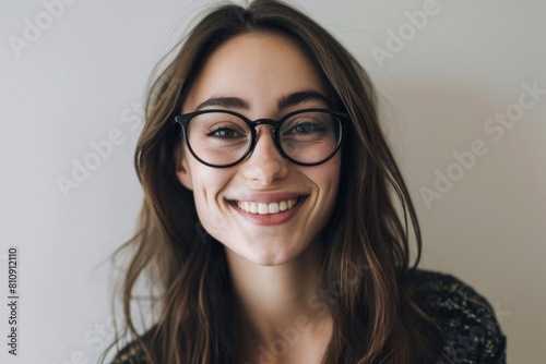 Beautiful woman with glasses smiling Fictional Character Created By Generative AI.