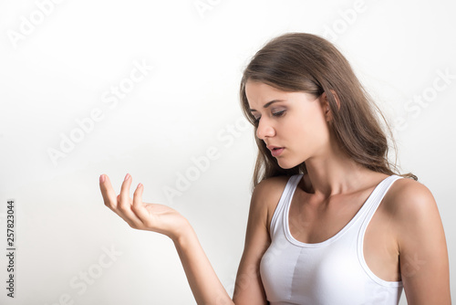 Beautiful woman with healthy body on white background