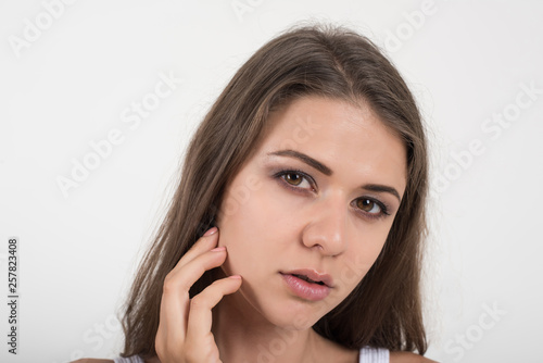 Beautiful woman with healthy body on white background