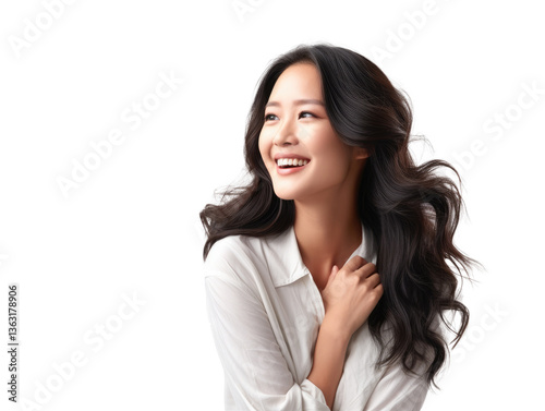 Beautiful Woman with Long Hair Smiling Against White Background