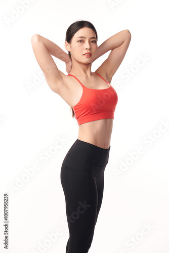 Beautiful young asian sport woman with sportswear ready for exercise on white background, Advertising sportswear and yoga wear, Healthy lifestyle, sport.