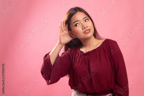 Beautiful young Asian woman listen to something.