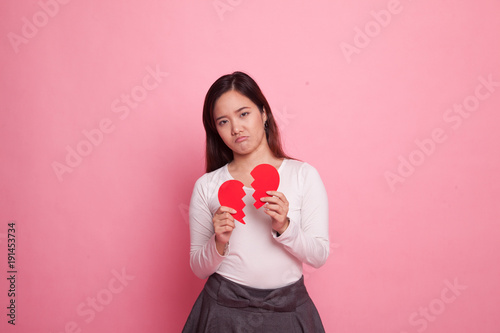 Beautiful young Asian woman with broken heart.