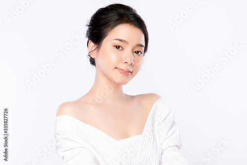 Beautiful Young Asian Woman with Clean Fresh Skin. Face care, Facial treatment, Cosmetology, beauty and healthy skin and cosmetic concept, woman beauty skin isolated on white background
