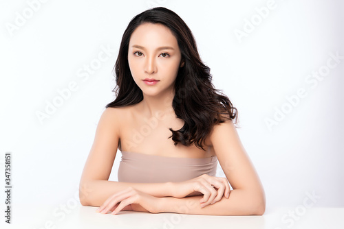Beautiful Young Asian Woman with Clean Fresh Skin. Face care, Facial treatment, Cosmetology, beauty and healthy skin and cosmetic concept, woman beauty skin isolated on white background