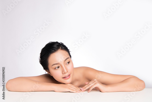 Beautiful Young Asian Woman with Clean Fresh Skin. Face care, Facial treatment, Cosmetology, beauty and healthy skin and cosmetic concept, woman beauty skin isolated on white background.