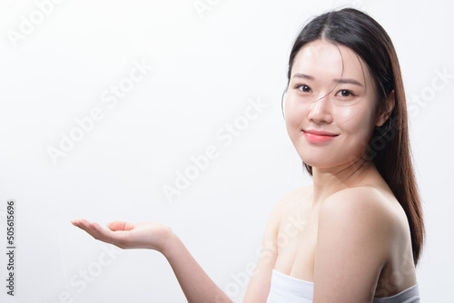 Beautiful Young asian Woman with Clean Fresh Skin look. Girl beauty face care. Facial treatment. Cosmetology, beauty and spa.