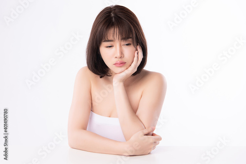 Beautiful Young asian Woman with Clean Fresh Skin, on Pink background, Face care, Facial treatment. Cosmetology, beauty and spa. Asian women portrait
