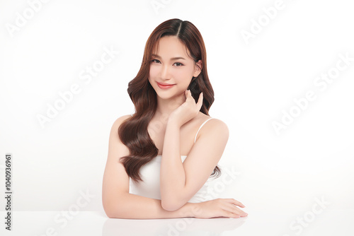 Beautiful young asian woman with clean fresh skin on white background, Face care, Facial treatment, Cosmetology, beauty and spa, Asian women portrait.