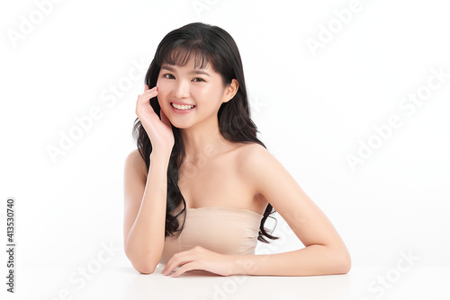 Beautiful young asian woman with clean fresh skin on white background, Face care, Facial treatment, Cosmetology, beauty and spa, Asian women portrait