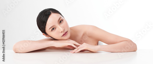 Beautiful young asian woman with clean fresh skin on white background, Face care, Facial treatment, Cosmetology, beauty and spa, Asian women portrait