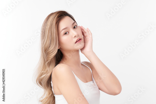 Beautiful young asian woman with clean fresh skin on white background, Face care, Facial treatment, Cosmetology, beauty and spa, Asian women portrait