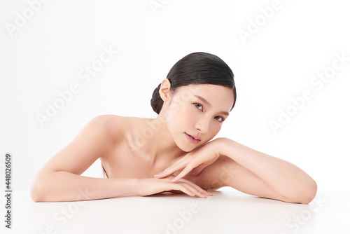 Beautiful young asian woman with clean fresh skin on white background, Face care, Facial treatment, Cosmetology, beauty and spa, Asian women portrait.
