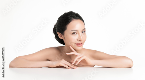 Beautiful young asian woman with clean fresh skin on white background, Face care, Facial treatment, Cosmetology, beauty and spa, Asian women portrait.