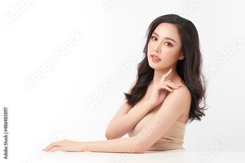 Beautiful young asian woman with clean fresh skin on white background, Face care, Facial treatment, Cosmetology, beauty and spa, Asian women portrait.