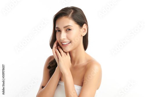 Beautiful young asian woman with clean fresh skin on white background, Face care, Facial treatment, Cosmetology, beauty and spa, Asian women portrait.