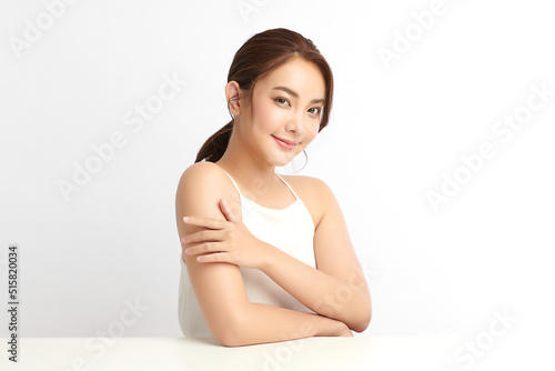 Beautiful young asian woman with clean fresh skin on white background, Face care, Facial treatment, Cosmetology, beauty and spa, Asian women portrait.