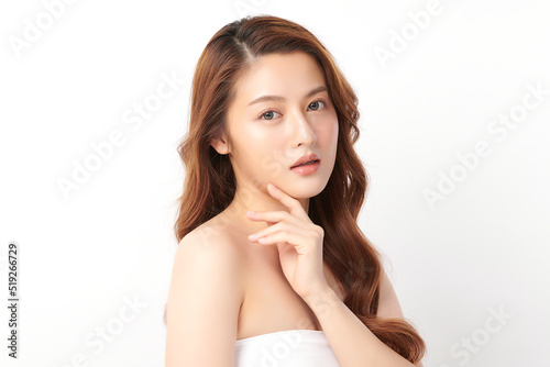 Beautiful young asian woman with clean fresh skin on white background, Face care, Facial treatment, Cosmetology, beauty and spa, Asian women portrait.