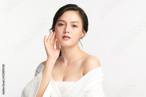 Beautiful young asian woman with clean fresh skin on white background, Face care, Facial treatment, Cosmetology, beauty and spa, Asian women portrait.