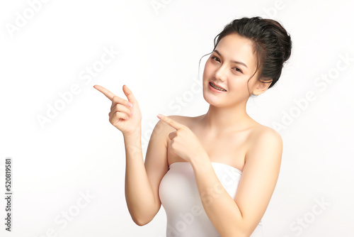 Beautiful young asian woman with clean fresh skin on white background, Face care, Facial treatment, Cosmetology, beauty and spa, Asian women portrait.