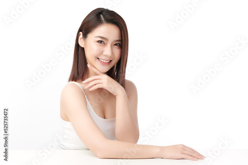 Beautiful young asian woman with clean fresh skin on white background, Face care, Facial treatment, Cosmetology, beauty and spa, Asian women portrait.