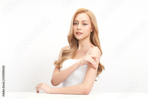 Beautiful young asian woman with clean fresh skin on white background, Face care, Facial treatment, Cosmetology, beauty and spa, Asian women portrait.