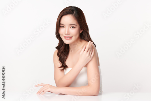 Beautiful young asian woman with clean fresh skin on white background, Face care, Facial treatment, Cosmetology, beauty and spa, Asian women portrait.