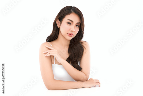 Beautiful young asian woman with clean fresh skin on white background, Face care, Facial treatment, Cosmetology, beauty and spa, Asian women portrait.