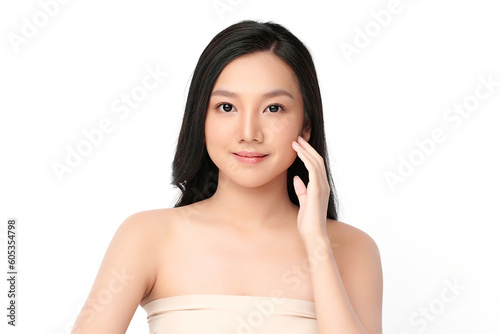 Beautiful young asian woman with clean fresh skin on white background, Face care, Facial treatment, Cosmetology, beauty and spa, Asian women portrait.
