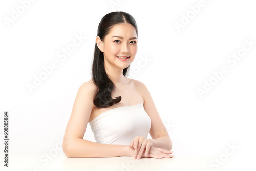 Beautiful young asian woman with clean fresh skin on white background, Face care, Facial treatment, Cosmetology, beauty and spa, Asian women portrait.